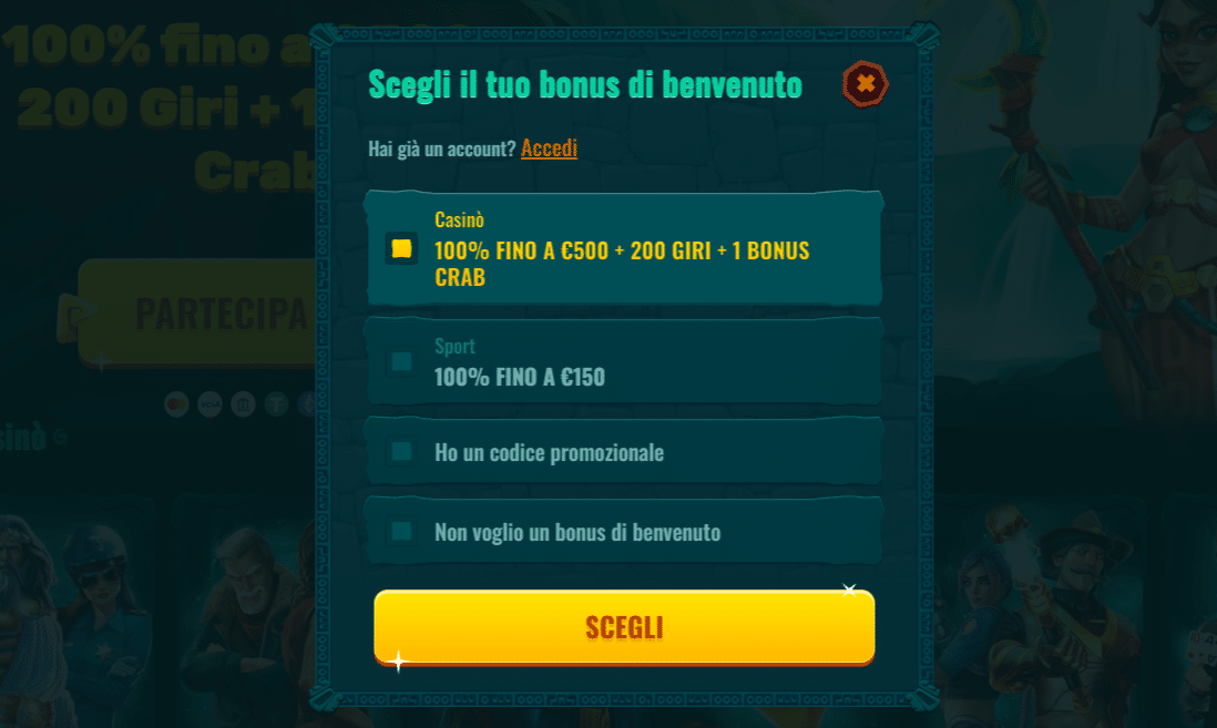 +200 Giri Gratis + 1 Bonus Crab