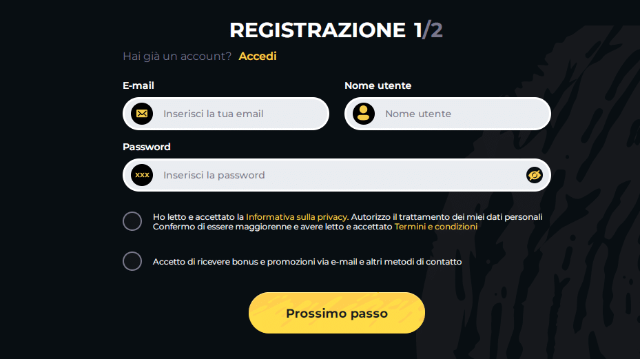 Accetta giocatori dall'Italia