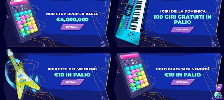 Ma anche altre occasioni conosciute a livello internazionale come Halloween o il Blak Friday. Cosa succede in occasione di questi periodi? Si verifica un’interessante opportunità per tutti i giocatori, ovvero la disponibilità di offerte aggiuntive rispetto a quelle quotidianamente proposte dal sito, che possono essere uguali o diverse in quanto a entità del premio, scadenza o altre condizioni.