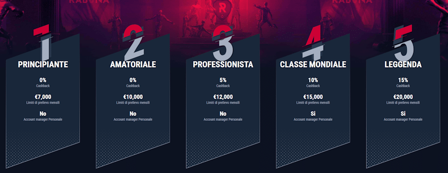 I livelli VIP sono di solito graduati in fasce crescenti man mano che si sale nelle entrate, ad esempio Silver, Gold e Platinum. Ogni livello dà accesso a benefit più esclusivi.
