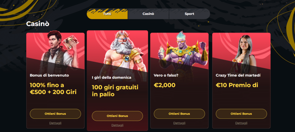 Oltre ai bonus di benvenuto il sito offre interessanti promozioni e offerte periodiche.