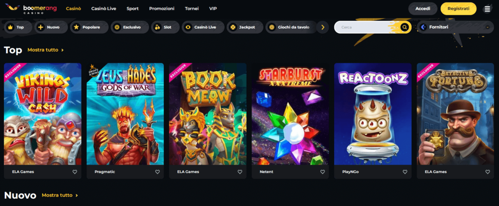 Ecco alcuni dei principali provider su Boomerang Casino: