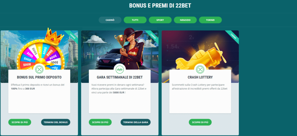 I promozioni al 22bet casinò offrono agli scommettitori tanti vantaggi extra.