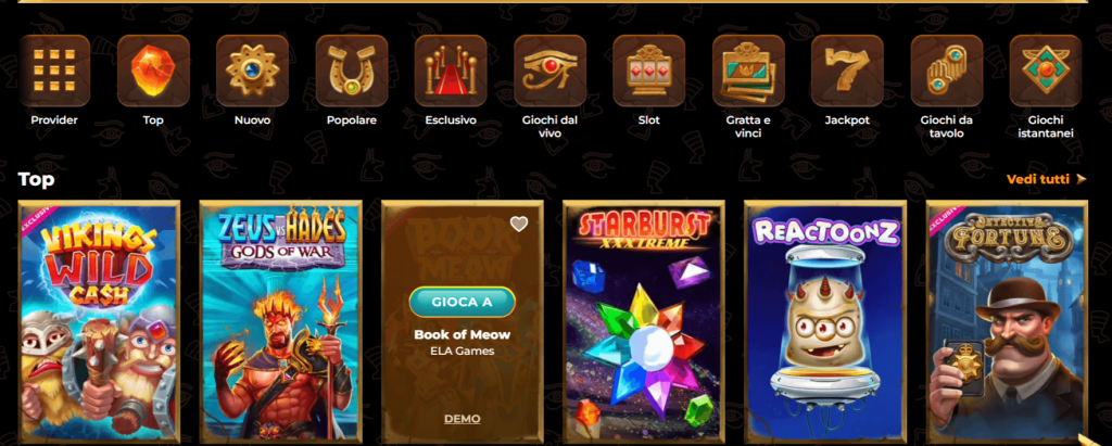 L’Home page è ben strutturata e abbastanza intuitiva e la navigazione risulta infatti semplice. E’ possibile accedere a qualsiasi categoria attraverso l’Home Page, in questo modo la ricerca di un gioco o di un bonus richiederà davvero pochi secondi.