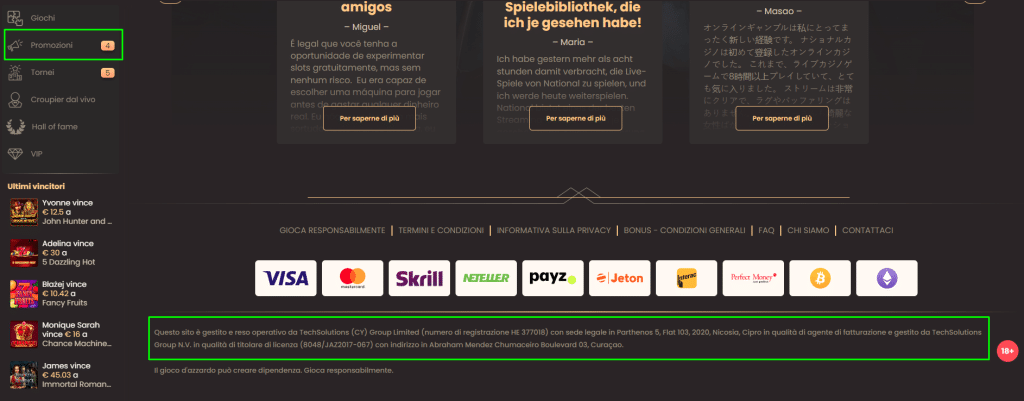 Tali offerte rappresentano delle belle opportunità per qualsiasi appassionato di gambling e sono ideate per incentivare l’accesso al gioco, attirando nuovi partecipanti. Il consiglio importante che vogliamo fornire ai lettori è quello di controllare con cura la sezione “Bonus e Promozioni” presente su tutti i siti accreditati. Altre nozioni fondamentali possono essere contenute nelle FAQ e nella pagina “Termini e Condizioni”. Leggendo le informazioni contenute in tali punti, ciascuno si assicura d’effettuare scelte consapevoli, usufruendo dei servizi con la massima chiarezza e sicurezza.