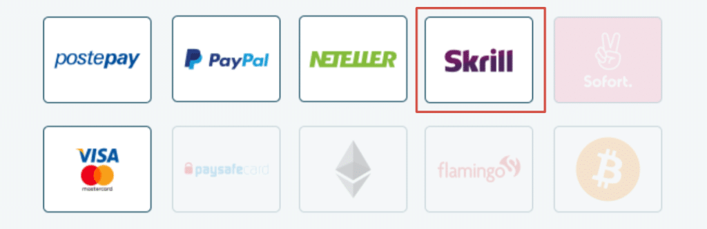 Ci sono alcuni metodi di pagamento diversi da skrill. Il mio consiglio è quello di usare un metodo di pagamento che sia conforme alle tue esigenze e che ti permetterà di sfruttare al massimo le potenzialità di questo e di avere una dinamica di gioco molto più fluida e leggera. Non posso non elencare tra questi quelli che si mostrano validi per motivi diversi e sta a te scegliere il migliore sulla base delle tue esigenze: