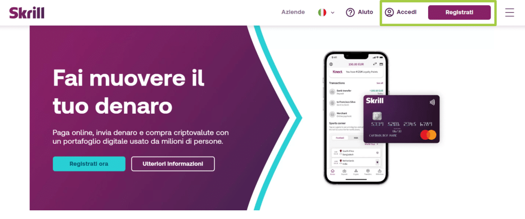 • Apertura di un conto: Per usufruire dei servizi di Skrill, è necessario aprire un conto. Ciò può essere fatto online attraverso il sito ufficiale.