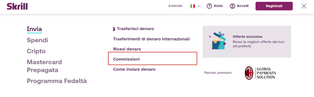 • Trasferimenti tra portafogli Skrill: sono sempre gratuiti.