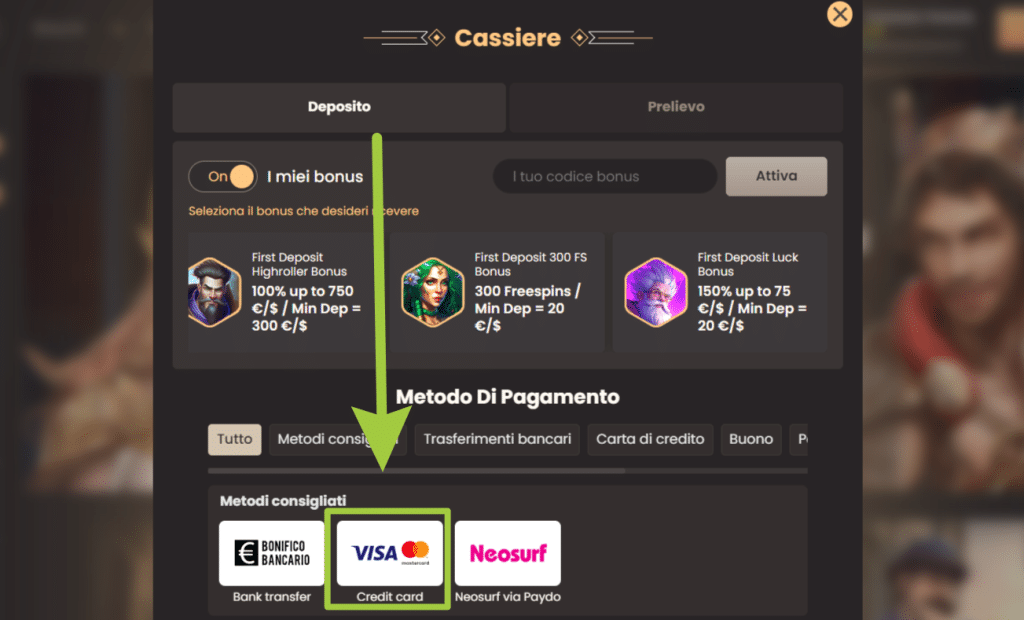 Solitamente sui casino mastercard e altri metodi, il bookmaker richiede all’iscritto di depositare un certo importo di denaro per poter riscattare il bonus. Il deposito minimo non è uguale per tutti i siti ma può variare, sebbene il range oscilli tra i 5 e i 25€.