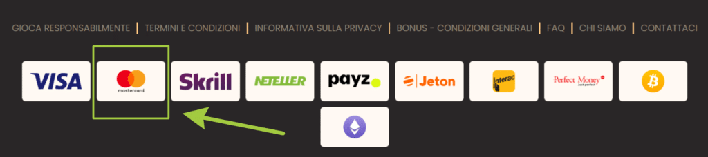 • Cashback: alcuni casinò rimborsano una piccola percentuale (2-5%) delle perdite con le carte Mastercard.