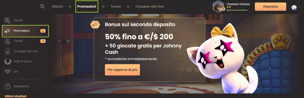 • Giri gratis: depositando con Mastercard si possono ottenere fino a 100 giri gratuiti su slot o roulette virtuali.