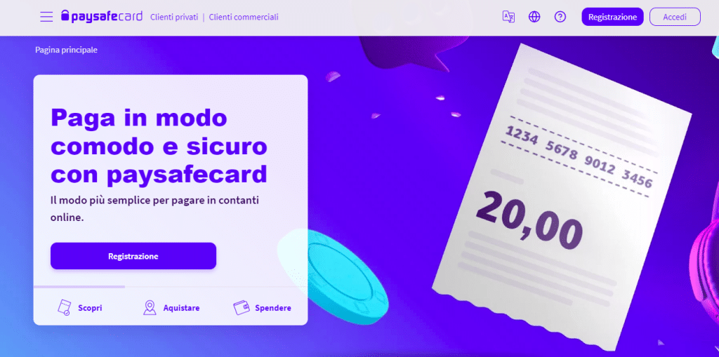 I rivenditori autorizzati sono anche shop online, indicati sul sito ufficiale dell’azienda. Registrandosi sul sito è altresì possibile acquistare direttamente una card dell’importo preferito tra quelli disponibili. Una volta fatto l’acquisto, si riceve uno scontrino fisico o digitale, contenete il codice univoco di 16 cifre che andrà digitato al momento del deposito sul casinò online. Quindi, se intendi usare PSC per il tuo gioco d’azzardo, la prima cosa da fare è procurarti la carta prepagata così come ti abbiamo spiegato.