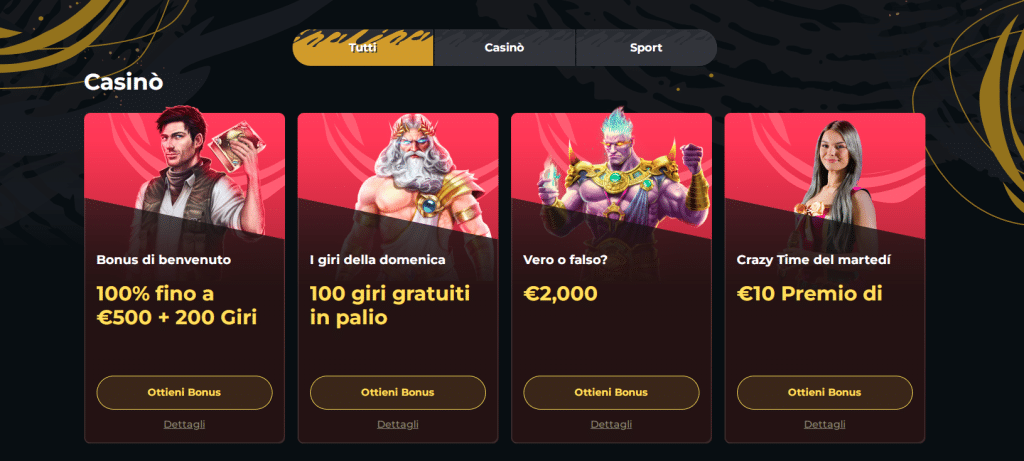 I bonus e le promozioni sono strumenti vantaggiosi per i giocatori, i quali vengono impiegati dai casinò online per favorire l’ingresso di nuovi partecipanti alla piattaforma ludica. Inoltre, sebbene siano generalmente simili tra loro, essi sono adottati per distinguersi nell’enorme offerta di proposte competitive, oggi reperibili sul web. I premi possono consistere in fun money e real money da giocare sul sito oppure giri gratis da usare per determinati giochi.