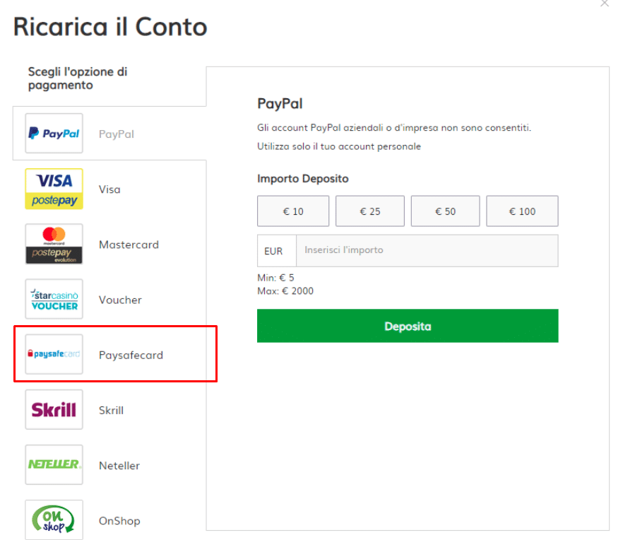 Casinò con Paysafecard