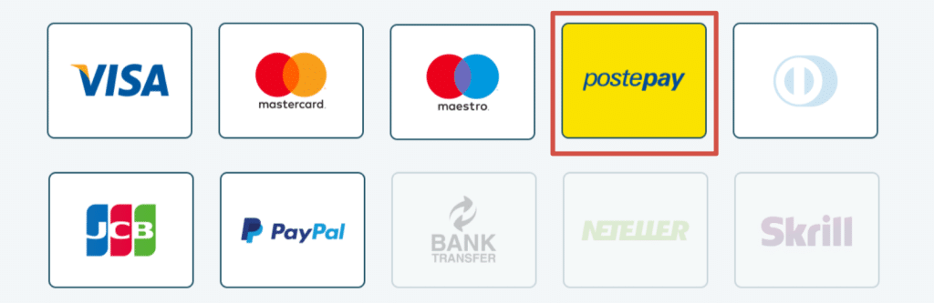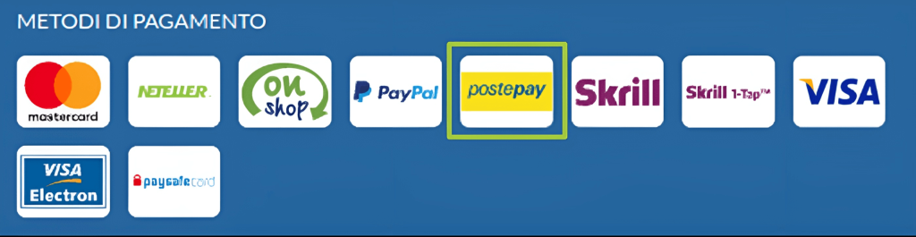 Metodi di pagamento sicuri e controllati: Postepay è un servizio fornito da Poste Italiane, questo fa da sigillo di garanzia per le carte di pagamento, in modo da essere sicuro degli acquisti o dei prelievi e depositi effettuati per il gioco tramite casinò online.