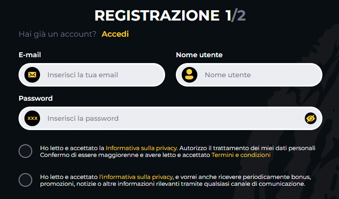 • Registrazione o accesso al conto: se sei un nuovo giocatore, dovrai registrarti per un account sul sito del casinò. Se sei già un giocatore esistente, dovrai accedere al tuo account.