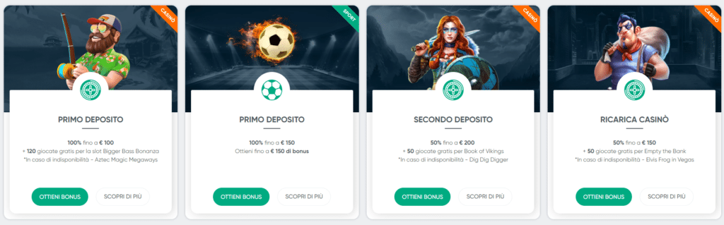 | 📌 Offerta di Benvenuto | Sport: Bonus primo deposito 100% extra fino a 150€ con minimo 10€ Casinò: