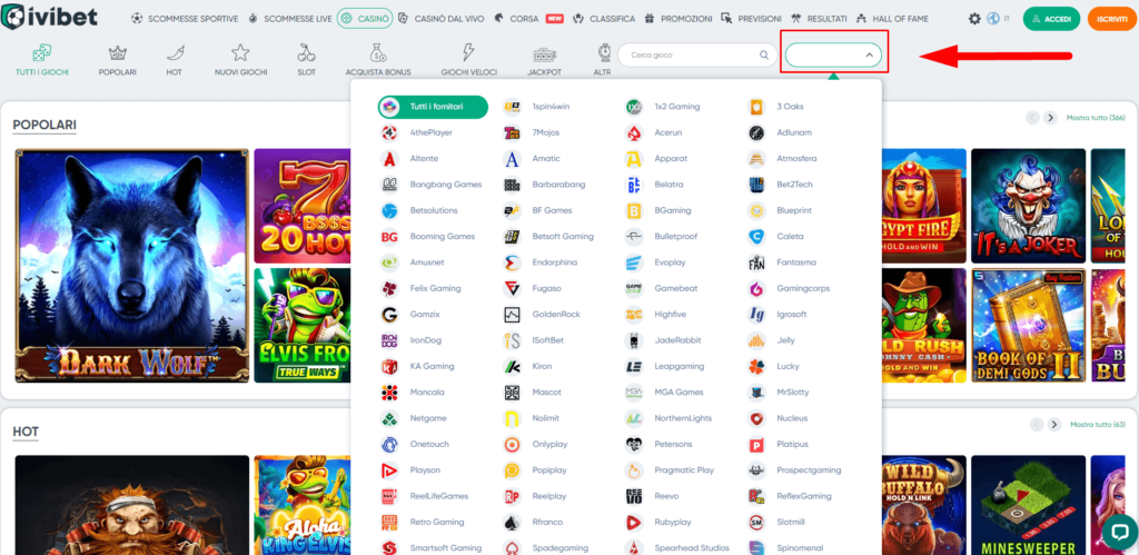 Ivibet presenta una ricca selezione di provider. Fra i più importanti troviamo: