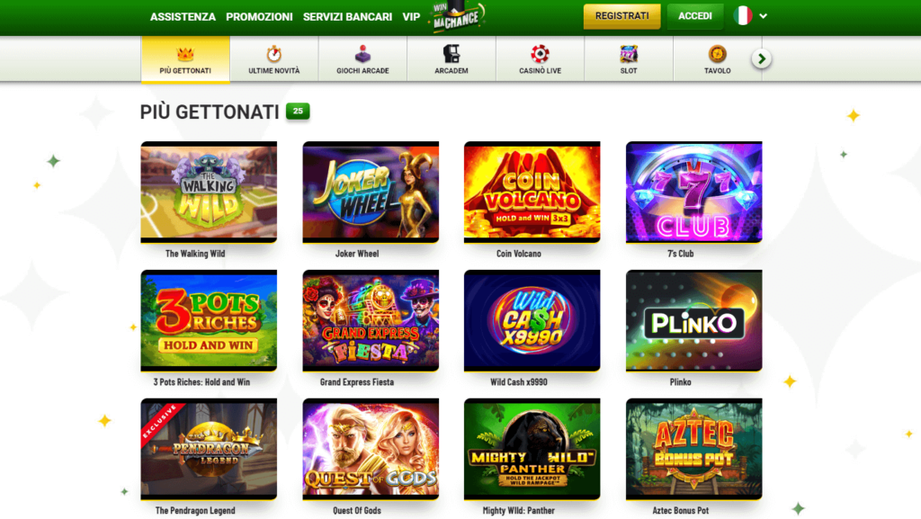 Si, Win MaChance offre un pacchetto vantaggioso per i giocatori che si iscrivono alla piattaforma, costituito da credito extra sui primi tre depositi e 100 giri gratis.