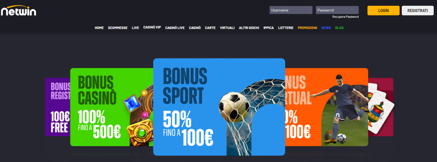 Netwin propone una gamma di incentivi diversificati che riescono a migliorare l’esperienza di svago sul portale, a prescindere da quale sia la categoria di intrattenimento scelta. Analizzando la proposta emerge la volontà di gratificare i player fin dal momento della registrazione e per tutta la sua permanenza sul sito.