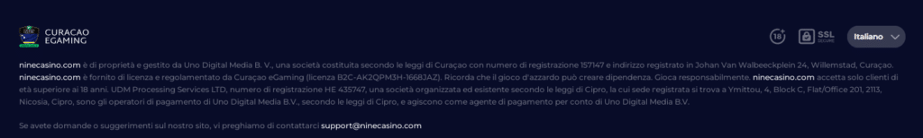 La piattaforma Nine Casino non dispone di questo tipo di licenza, ma questo non significa che non sia regolamentata.