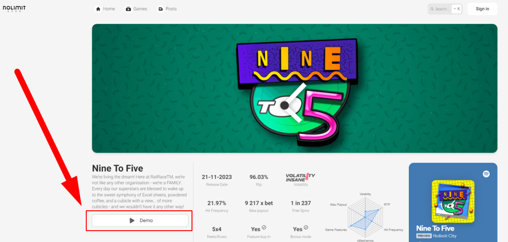 1. Accedendo al sito ufficiale dello sviluppatore Nolimit city, avrete la possibilità di giocare alla demo gratuita di tutte le slot del provider. Per farlo, vi basterà accedere al sito, recarvi nel menù in alto a destra e selezionare la voce “Games”. Si aprirà subito una nuova schermata con le slot Nolimit city disponibili. Selezionate la slot che vi attrae e cliccate su “Demo” per iniziare a giocare gratuitamente.