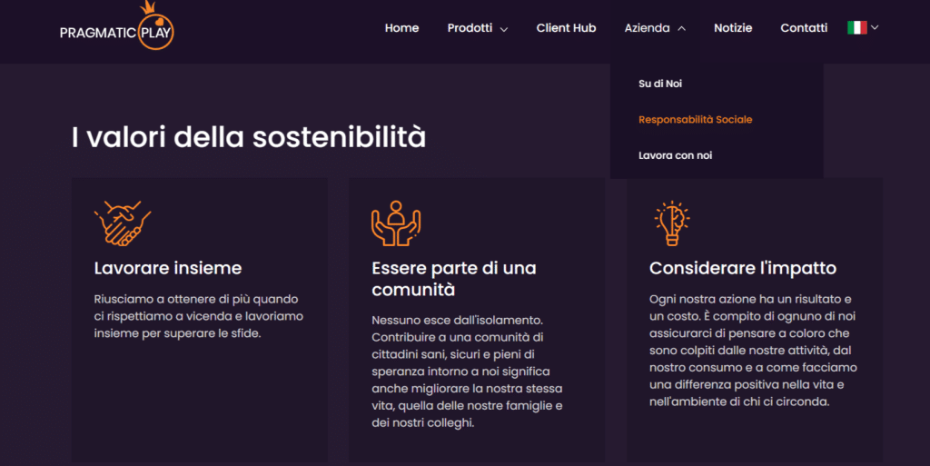 Grazie alla presenza globale, Pragmatic Play ha modo di offrire un aiuto concreto alle persone in difficoltà, contribuendo a costruire un futuro migliore. L’impegno dell’azienda per migliorare il mondo si concentra su molteplici progetti che le stanno a cuore e crede nel potere della collaborazione. Per saperne di più sulla loro responsabilità sociale, vi invito a leggere la pagina dedicata. Personalmente ho trovato di ispirazione la lettura della pagina: in modo chiaro e trasparente vengono mostrati i punti salienti della strategia di corporate social responsibility e i valori che guidano il processo di scelta e implementazione dei progetti sociali supportati dall’azienda.