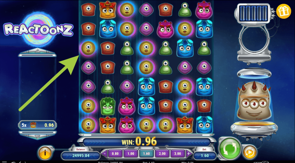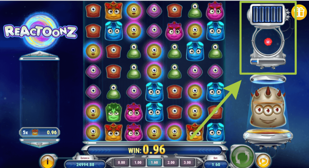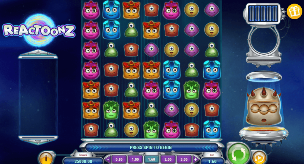 • Nessuna Linea di Pagamento Tradizionale: A differenza delle slot tradizionali, “Reactoonz” non ha linee di pagamento fisse. Le vincite dipendono esclusivamente dalla formazione di cluster di simboli.