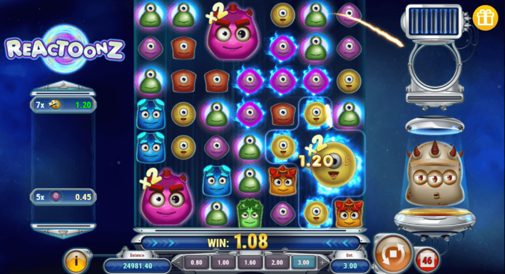 Reactoonz è una popolare slot machine online che offre una tematica aliena, caratterizzata da un formato a griglia 7x7 e meccaniche di gioco uniche basate su cluster di simboli. Un vero e proprio spasso per tutti gli utenti che l’hanno provata almeno una volta.